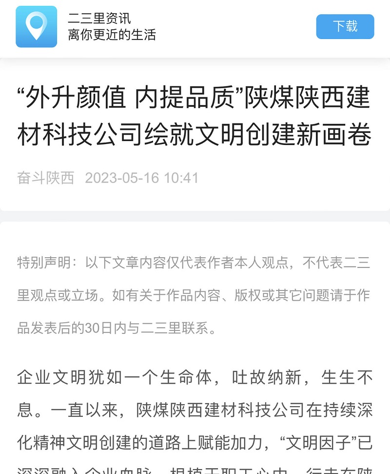 二三里 | “外升顏值 內(nèi)提品質(zhì)”陜煤陜西建材科技公司繪就文明創(chuàng)建新畫(huà)卷