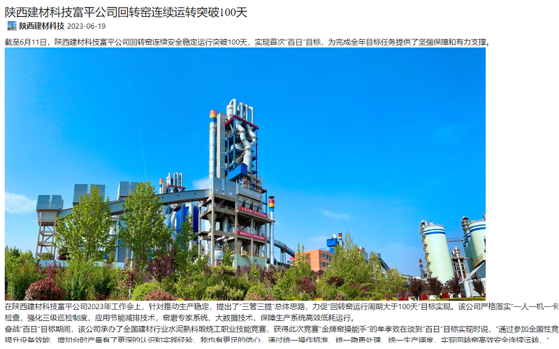 奮進(jìn)陜煤、陜煤集團(tuán)官網(wǎng) | 陜西建材科技富平公司回轉(zhuǎn)窯連續(xù)運(yùn)轉(zhuǎn)突破100天