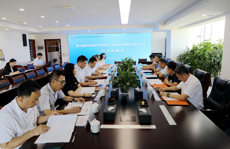 8月21日,陜西循環(huán)經(jīng)濟(jì)工程技術(shù)院有限公司董事長(zhǎng)程福安,總經(jīng)理李鋒偉一行到陜西建材科技公司調(diào)研座談,公司黨委副書(shū)記、總經(jīng)理周紅等班子成員及相關(guān)業(yè)務(wù)部門(mén)負(fù)責(zé)人參加座談會(huì)。